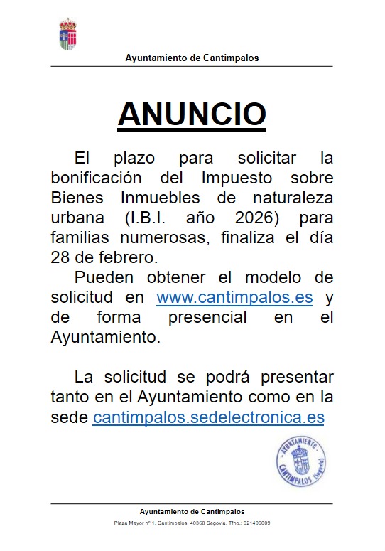BONIFICACION IBI PARA FAMILIAS NUMEROSAS