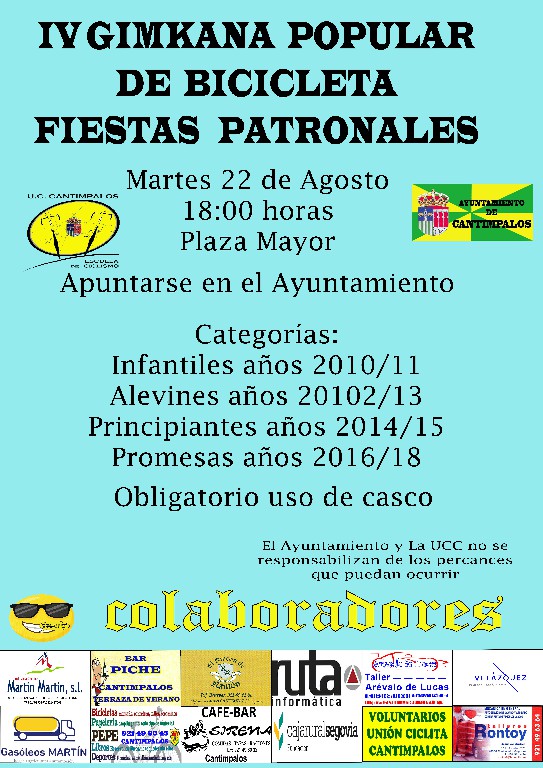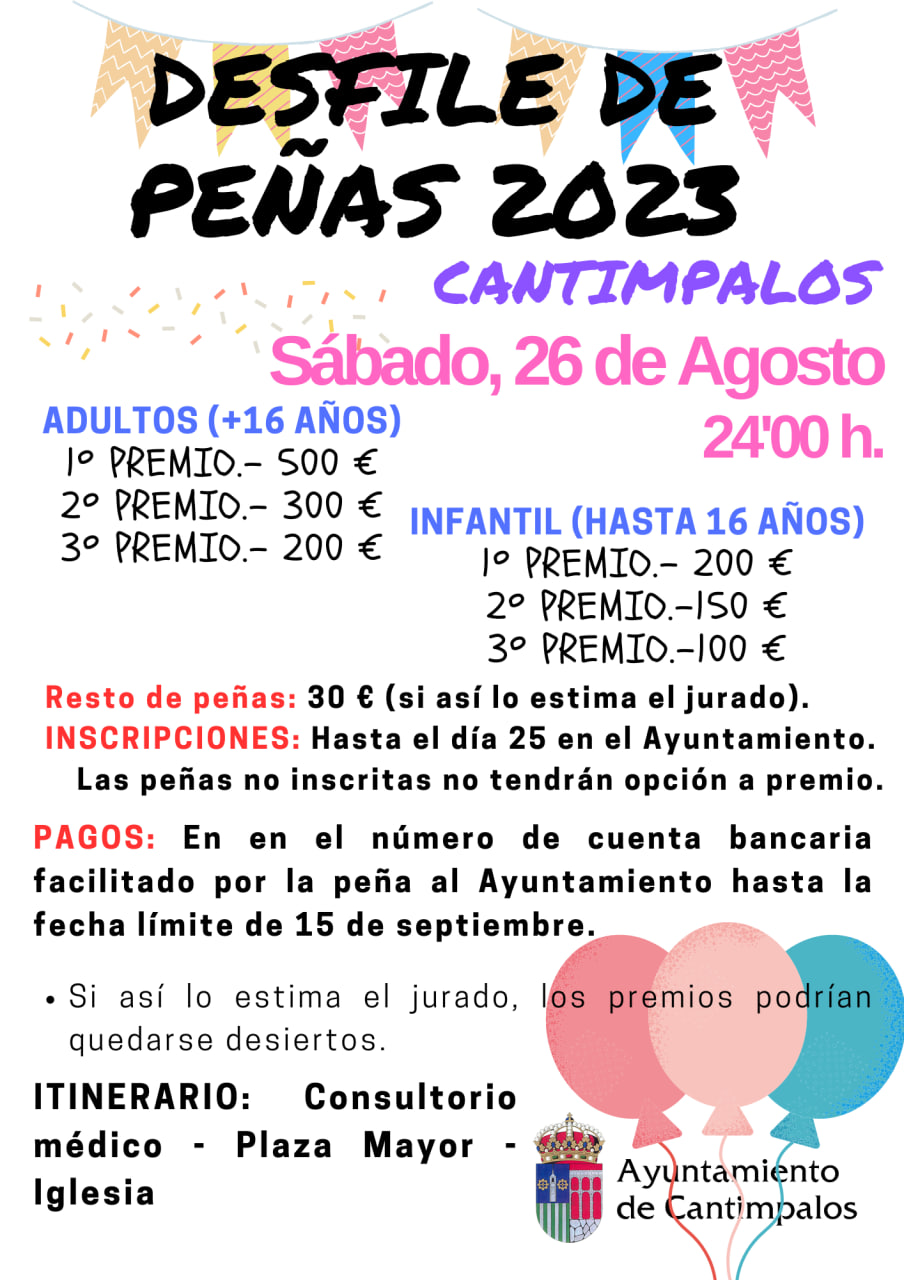 Programa Semana Cultural y Fiestas Locales 2023 Cartel Semana Cultural y Fiestas Locales 2023. Programa y anexos de actividades. Documentos programa cantimpalos 2023 (1).pdf (pdf 42,2 MB)photo_2023-08-14_08-51-15 (1).jpg (jpg 106,8 kB)GIMKANA 2023 (1).jpg (jpg 170,4 kB)Cantimpalos (2).jpg (jpg 2 MB)Cantacuentos-Ester-Quintana.png (png 1,5 MB)desfile peñas.jpg (jpg 215,5 kB)Festejos taurinos.jpeg (jpeg 142,2 kB)Recortes.jpeg (jpeg 198,3 kB)VENTA ANTICIPADA_page-0001.jpg (jpg 666,7 kB)