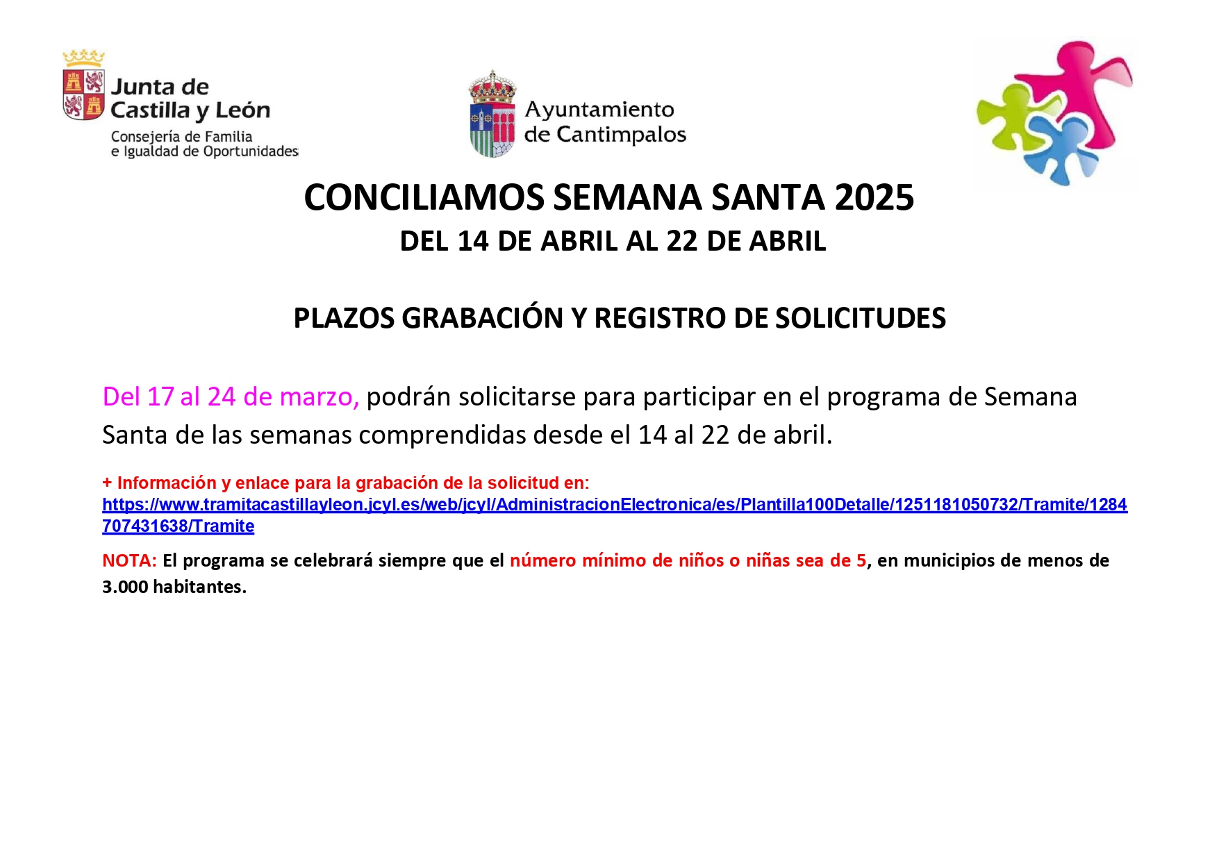 El programa se celebrará siempre que el número mínimo de niños o niñas sea de 5, en municipios de menos de 3.000 habitantes