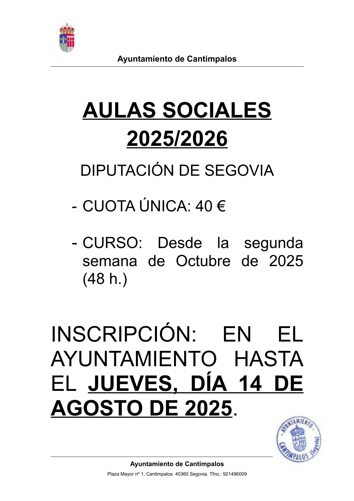 Abierto plazo de solicitud para AULAS SOCIALES 2025/2026