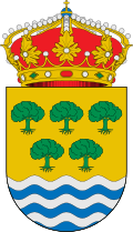 ESCUDO CARRASCAL DEL RÍO ESCUDO CARRASCAL DEL RÍO «En campo de oro cinco carrascas de sinople, puestas tres y dos, sobre ondas de plata y azur. Escudo timbrado con una corona real de oro.»