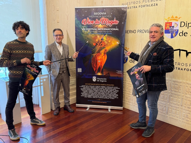 Este proyecto persigue la programación y desarrollo en los pueblos segovianos de actuaciones relacionadas con la magia, la prestidigitación o el ilusionismo, eligiéndolas entre el catálogo ofrecido y que se irán sucediendo entre el 14 de diciembre y el 6 de enero de 2024, como ha quedado de manifiesto en la presentación que ha tenido lugar en el Salón del Trono, con la intervención del vicepresidente primero de la Diputación y responsable del Área de Cultura, Juventud y Deportes, José María Bravo, y el responsable de Vive la Magia, Adolfo Casas.