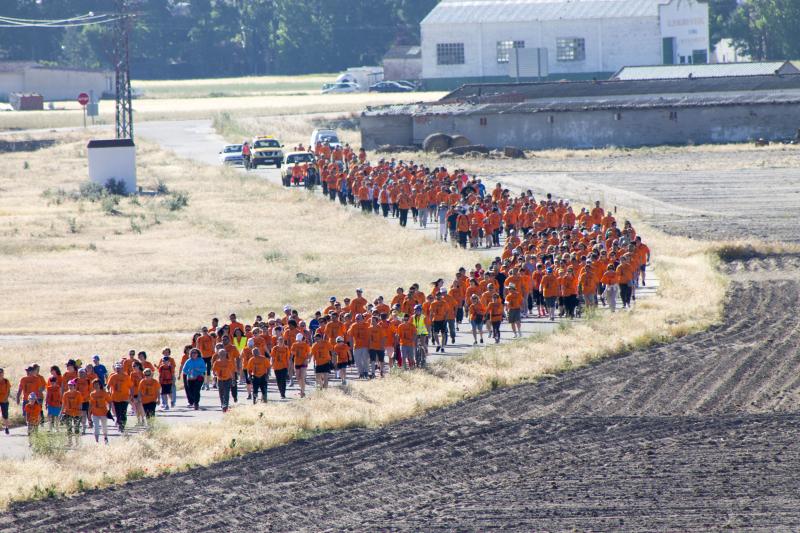 Alfonso de Pablos, miembro de ASGEM, y Carmen Arjona, de la AECC, fueron los encargados de inaugurar la marcha que vistió de colorido naranja, de las camisetas que todos portaban, las tres localidades participantes.