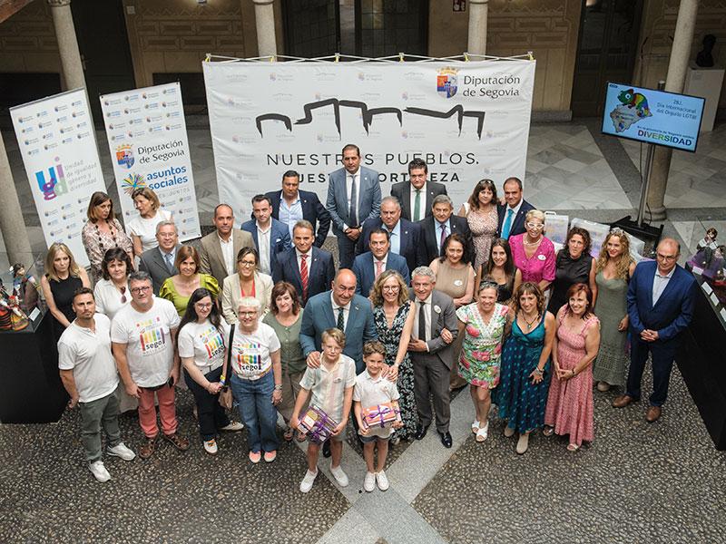 Ante la cercanía del 28 de junio, cuando se conmemora el Día Internacional del Orgullo LGTBI+, la Diputación de Segovia ha querido anticiparse a la efeméride y por ello el Patio de Columnas del Palacio Provincial ha acogido un acto institucional en el que se ha ensalzado la diversidad que prolifera -y que debe seguir fomentándose- a lo largo y ancho de todo el territorio segoviano, que “es diversidad”, como ha reiterado el presidente, Miguel Ángel de Vicente, añadiendo que, desde la institución provincial “estamos coloreando el mapa, pintándolo de educación, escucha, opiniones, conocimientos, trabajo, lealtad, integridad y honestidad”. De valores “de los que no otorga el ADN de la raza, la procedencia, el género o la sexualidad”.