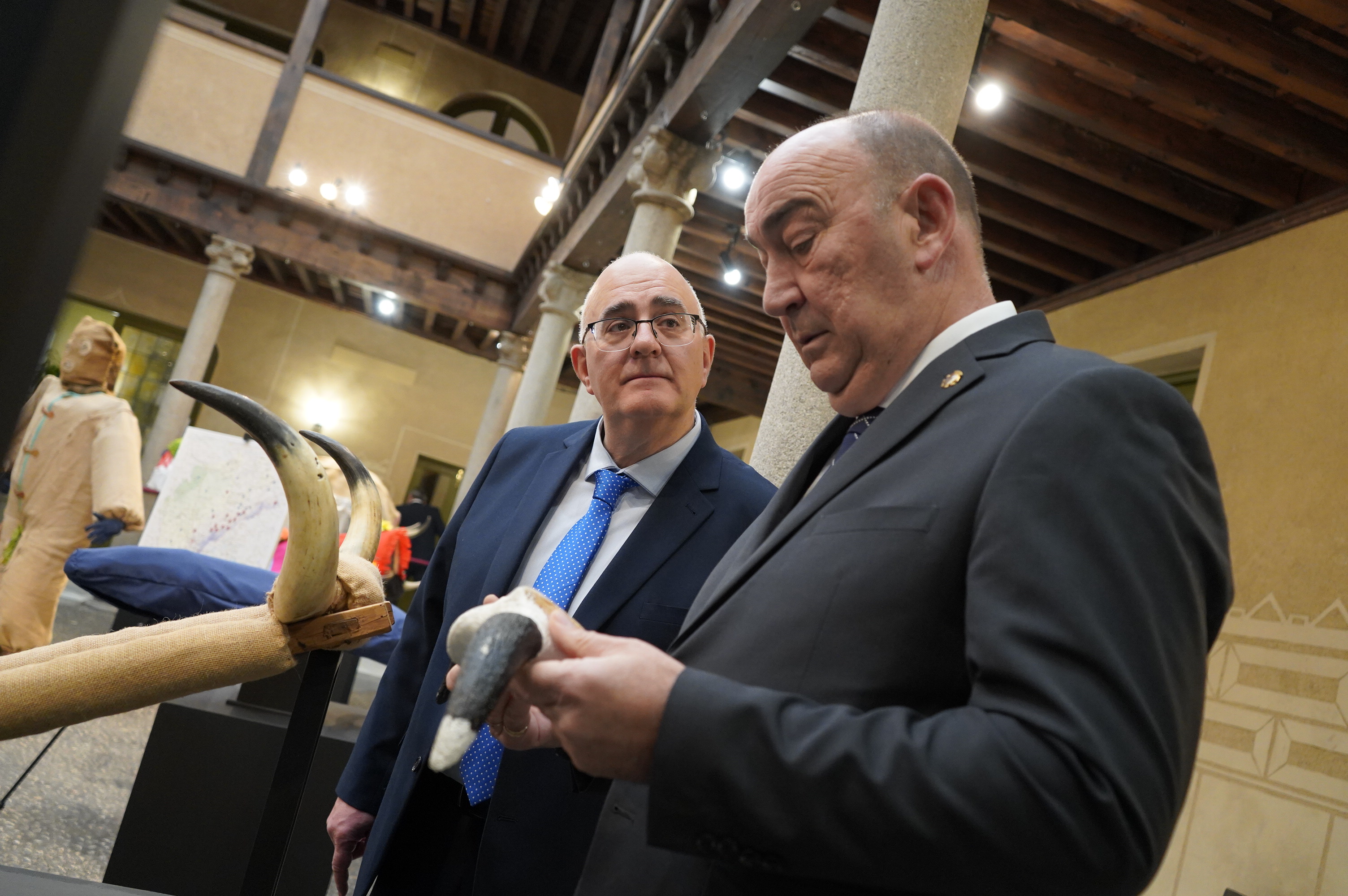 Una cornamenta perteneciente al Carnaval de Collado Hermoso acompaña a los armazones de otras trece localidades de la provincia.