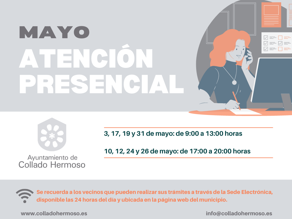 El ayuntamiento de Collado Hermoso abrirá sus puertas para la atención presencial a los vecinos durante ocho fechas a lo largo del mes de mayo, siendo el horario matutino en cuatro de las mismas y vespertino en otras cuatro.