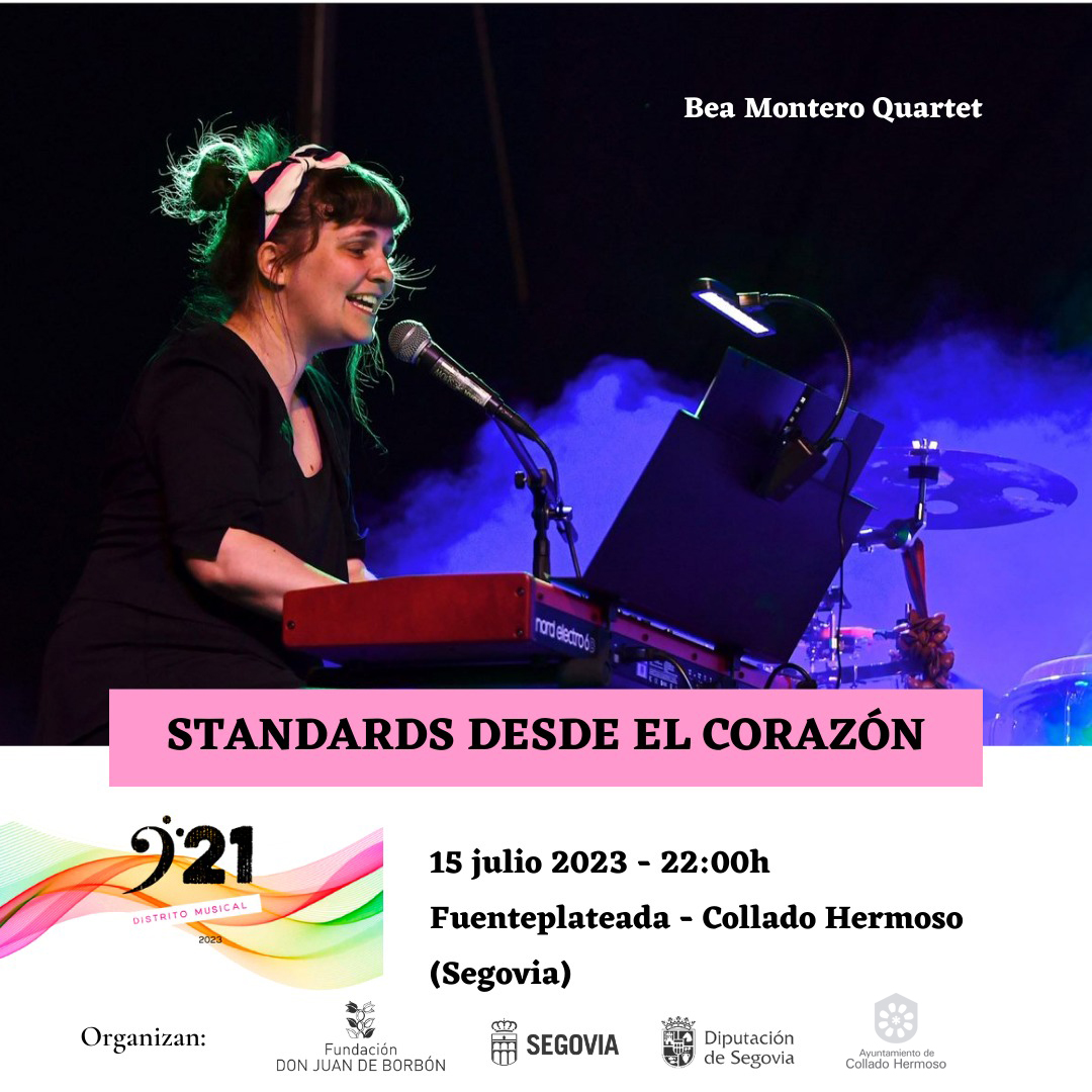 El próximo sábado, 15 de julio el programa '921 Distrito Musical', que organiza la Fundación Don Juan de Borbón con la colaboración de la Diputación y de los ayuntamientos que lo acogen, llegará a Collado Hermoso con la actuación gratuita (hasta completar aforo) de Bea Montero Quartet, a partir de las 22:00 horas, en Fuenteplateada.