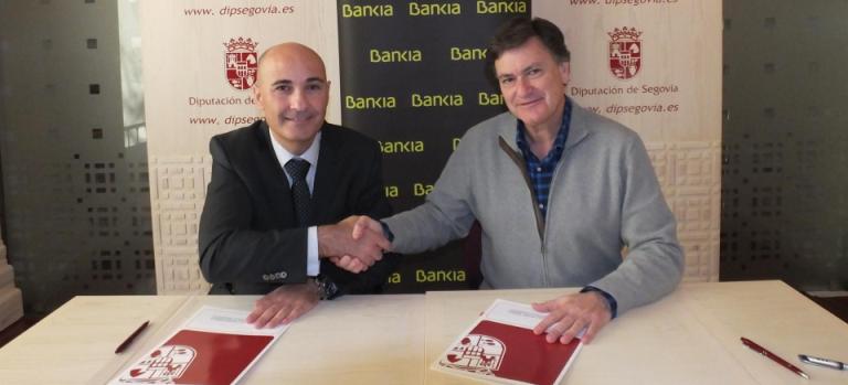 El acto de la firma ha tenido hoy lugar en la Diputación de Segovia y ha contado con la presencia del presidente de la Diputación, Francisco Vázquez; el director Territorial de Bankia en Castilla y León, Jaime Campos.
