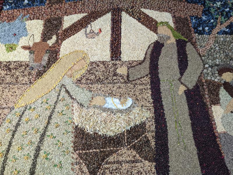 Otro ejemplo de gran aprovechamiento de material se ve en el ganador de la categoría Popular, dotado con un premio de 1.000 euros: la Asociación de Mujeres El Tesorillo. El original Nacimiento, expuesto en el municipio de Marugán, consta de un tapiz de alrededor de tres metros y medio de ancho por metro y medio de alto, compuesto por una representación de la tradicional estampa navideña hecha con especias, semillas y frutos recogidos por los propios miembros de la asociación. Como ellas mismas expresaron, “no hace falta gastarse mucho para poder montar un Belén, ya que es el propio campo el que muchas veces te provee de las materias necesarias”.