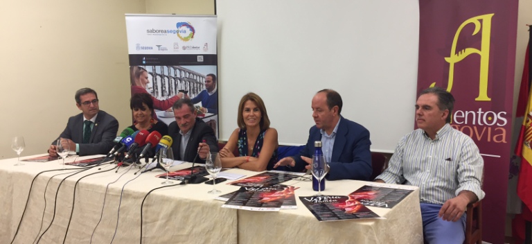 La Feria se ha presentado hoy en la Casa del Sello, en un acto en el que han estado presentes el presidente de los Camareros, Pablo Martín; el de los Hosteleros, Cándido López; el de las Industrias Cárcnicas de Segovia (AICA), Pedro Postigo; la concejala de Turismo del Ayuntamiento, Claudia de Santos; y los diputados provinciales de Prodestur, Magdalena Rodríguez, y de Promoción Económica, Jaime Pérez.