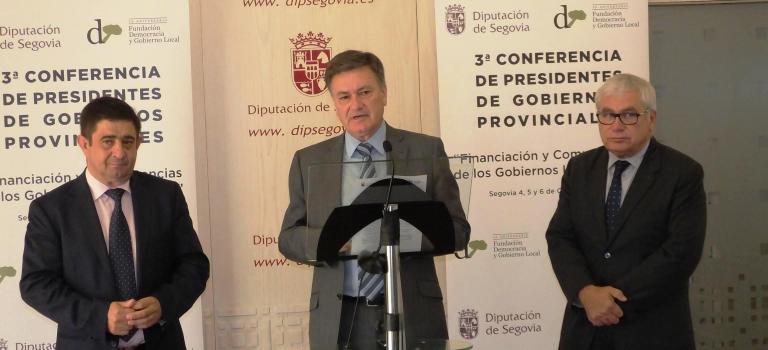 Así se inicia el texto de la declaración aprobada al final de la III Conferencia de Presidentes de Gobiernos Provinciales, que durante los tres últimos días se ha celebrado en Segovia. El presidente de la institución provincial segoviana, Francisco Vázquez, ha sido el encargado de leer ese documento, acompañado por el presidente de la Diputación de Jaén, Francisco Reyes, y el director de la Fundación Democracia y Gobierno Local, Ramón Camp.