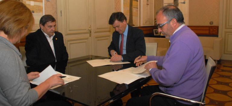 En la firma del convenio, que tuvo lugar en el despacho de Presidencia, estuvieron también presentes el diputado de Acción Territorial, Basilio del Olmo, y la secretaria general de la Diputación, Lourdes Merino.