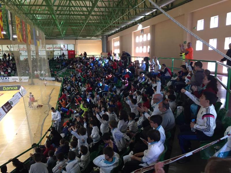500 niños y niñas, participantes en las Escuelas Deportivas de la Diputación, llegados de diferentes puntos de la provincia pusieron el colorido en las gradas del Pedro Delgado el sábado y auparon al Segovia Futsal a la victoria ante el Prone Lugo, un encuentro que fue declarado Día de la Provincia, y que le da acceso a disputar los play off de ascenso a Primera División. La institución provincial fletó diferentes rutas de autobuses para que los pequeños pudieran disfrutar de una tarde de fútbol sala.
