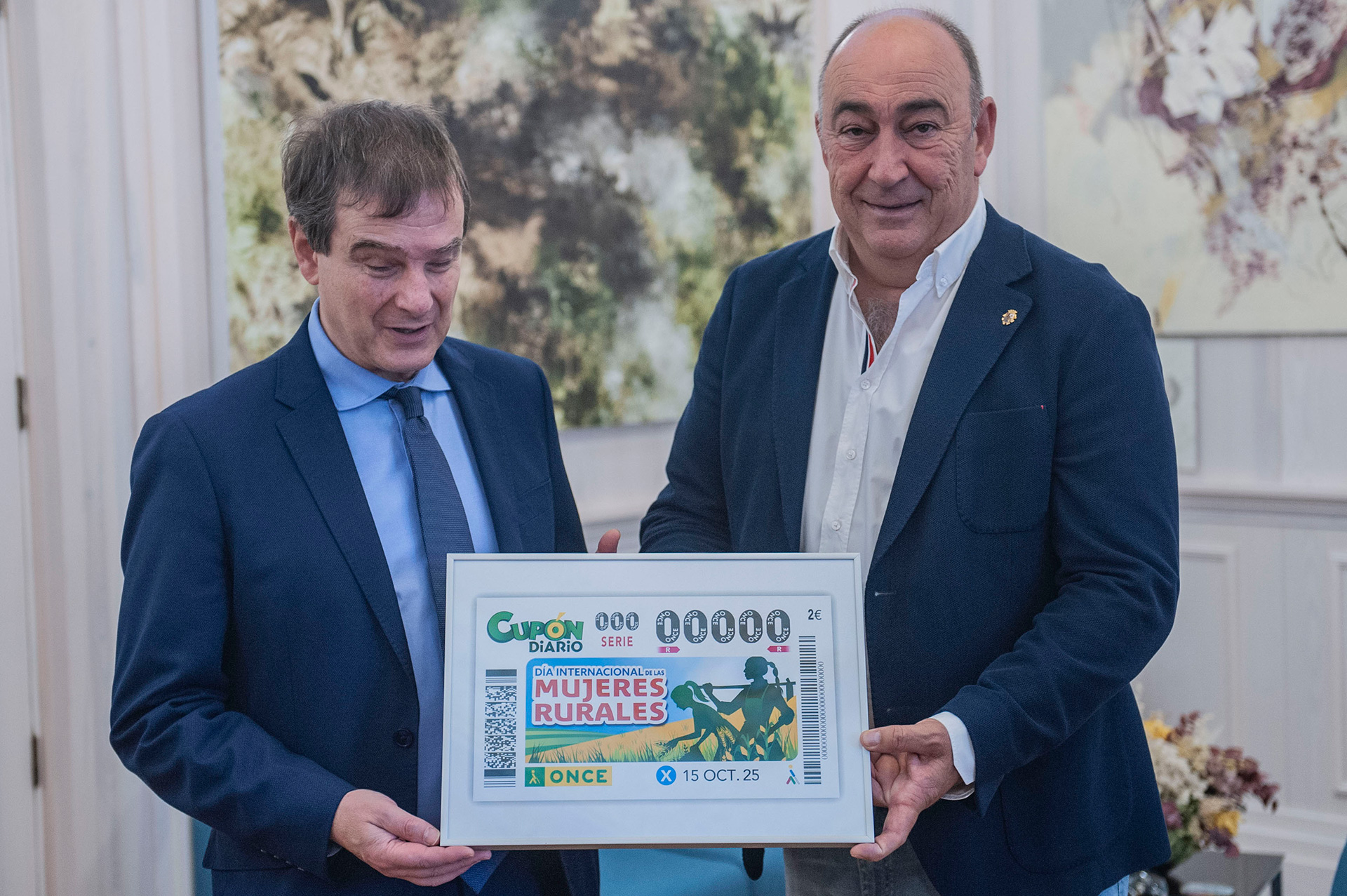 Claudio Congosto Becerra, Director de la ONCE en Segovia, y Miguel Ángel de Vicente Martín, Presidente de la Diputación de Segovia, han presentado este cupón, con el que la ONCE quiere destacar la importancia de la aportación económica, social y cultural que desarrollan las mujeres en áreas rurales y su decisiva contribución a la seguridad alimentaria, al bienestar y a construir sociedades mejores. “Si nuestra provincia, a día de hoy, es un territorio desarrollado, en el que habitan personas educadas, cualificadas y capacitadas para hacerlo progresar, desde el sector primario hasta el ámbito empresarial, pasando por áreas como la cultura, el patrimonio, el turismo, las nuevas tecnologías o la investigación científica, es gracias al papel que han tenido a lo largo de décadas y siglos las mujeres, las madres y abuelas de nuestros pueblos en la vida familiar y laboral”, ha manifestado Miguel Ángel de Vicente, celebrando la iniciativa de la ONCE y añadiendo que “cualquier forma de darles visibilidad es importante, porque su trabajo no sólo ha influido directamente en el campo o la labor artesanal, también ha favorecido el progreso urbano e industrial y, más recientemente, la creación y el crecimiento empresarial en el territorio, gracias a las nuevas tecnologías”.