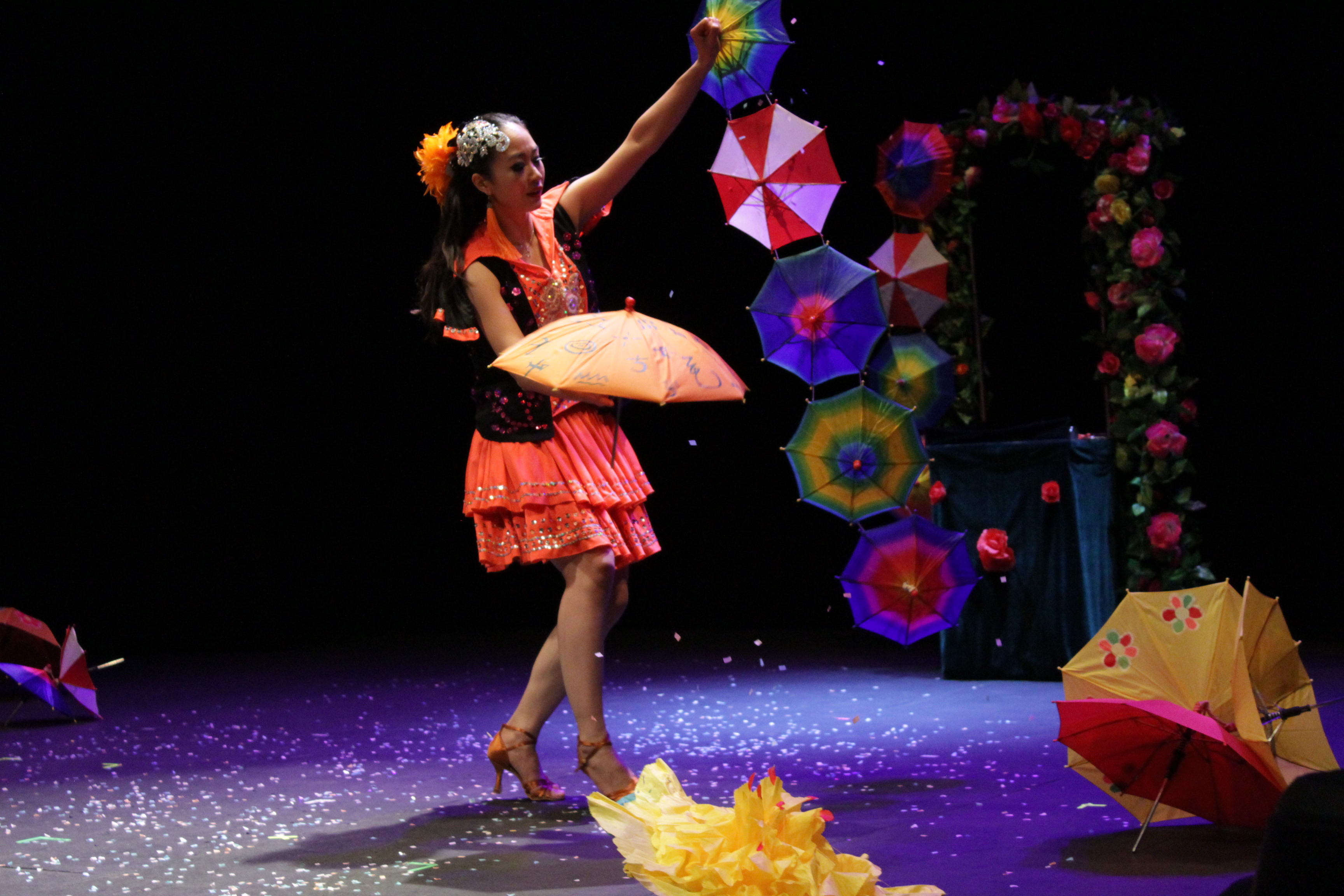 Un principio que comenzó entre asiático y latino, con Huang Wen Yu multiplicando sombrillas de todos los tamaños y colores mientras bailaba canciones propias del sur de América. La china movía un brazo y hacía aparecer una sombrilla. Abría la mano y hacía brotar dos. Giraba sobre sí misma y el escenario se llenaba de confeti que caía junto a una hilera de sombrillas. Unos números más tarde, y esta vez con paso y pasión de tango, serían los franceses Kenris Murat y Aurélia quienes hiciesen aparecer y desaparecer de sus manos cartas de colores, flores y hasta fuego. Las bocas abiertas y el empeño en tratar de buscar la nada de donde salía el todo se instalaba en las caras de grandes y pequeños entre el público.