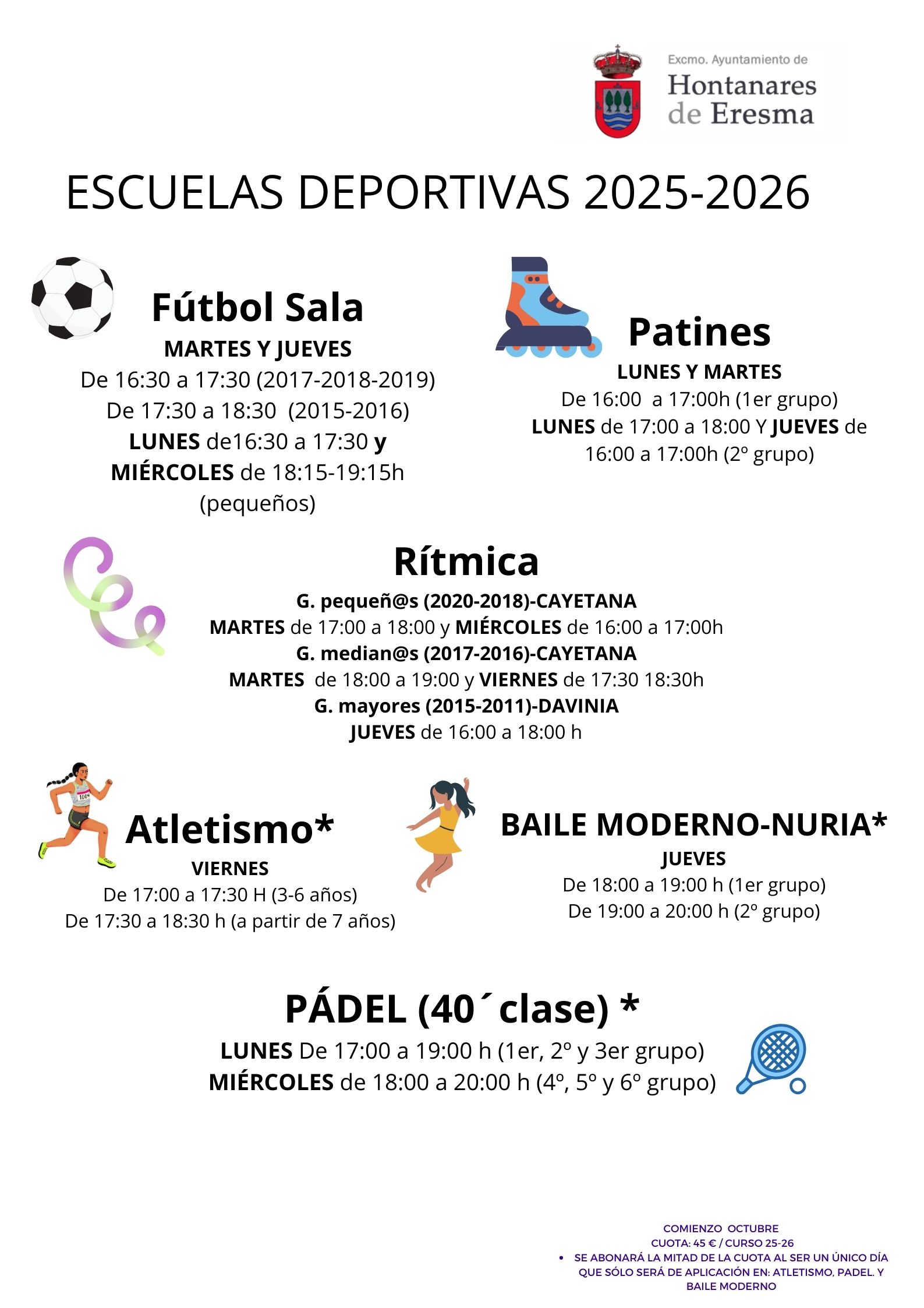 Horarios escuelas deportivas y deporte social 2025-2026.