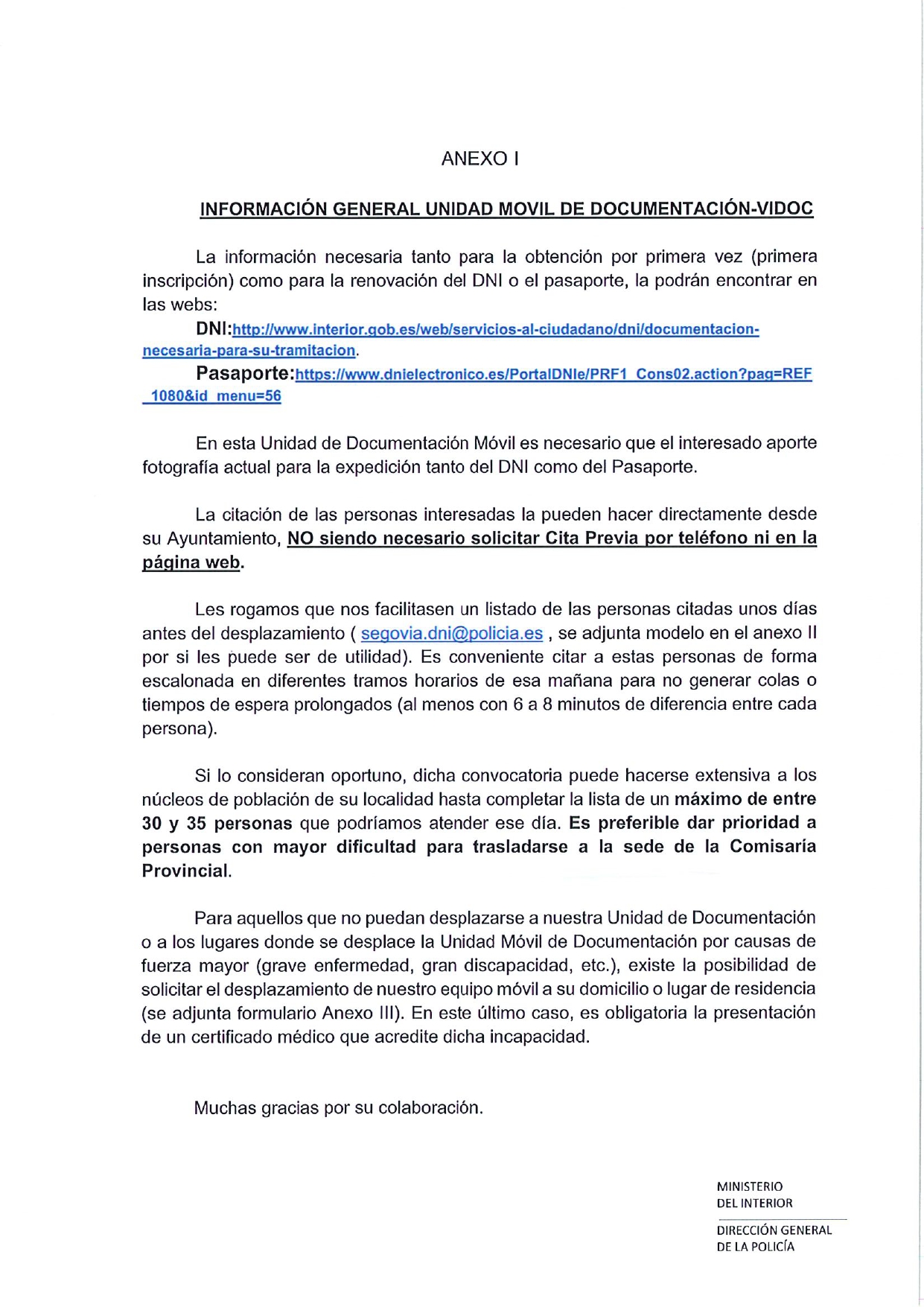 INFORMACIÓN: EL PRÓXIMO JUEVES 13 DE NOVIEMBRE EN HORARIO DE 9:30 A 13:30H SE DESPLAZARÁ UNA UNIDAD MÓVIL DE DOCUMENTACIÓN -VIDOC DE LA COMISARIA PROVINCIAL A NUESTRO MUNICIPIO PARA LA EXPEDICIÓN DE DNI, PASAPORTE, RENOVACIÓN CERTIFICADO DIGITAL DE DNI Y CONTRASEÑA DE ACCESO.