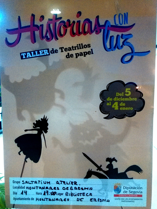 Taller de teatrillos de papel: "Historias con Luz" Taller de teatrillos de papel: "Historias con Luz" En la Biblioteca de Hontanares de Eresma, el miércoles 14 de diciembre a las 17:00 horas. A cargo de Saltatium Atelier. Se ruega apuntarse en la propia Biblioteca.