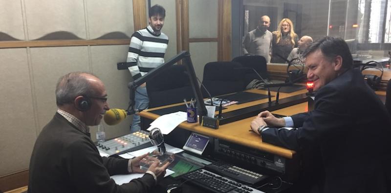 El presidente de la Diputación, Francisco Vázquez, ha aprovechado la entrevista que mensualmente le viene realizado Alfredo Matesanz en Radio Segovia para entregarle esta mañana un pequeño obsequio con motivo de su inminente jubilación.