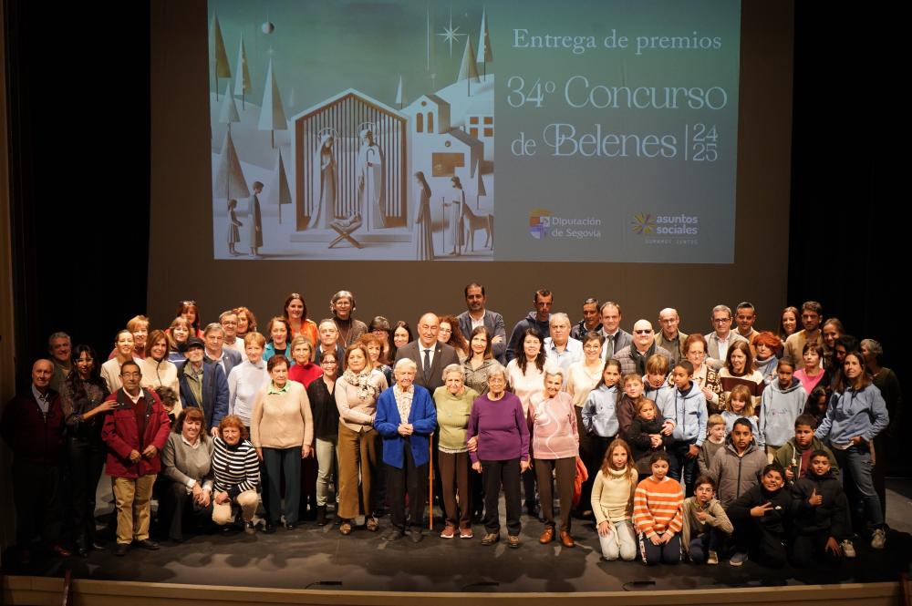 Representantes de comunidades educativas, de asociaciones y de centros residenciales, entre otros colectivos, se han congregado en el Teatro Juan Bravo, para asistir al acto de entrega de premios del Concurso de Belenes de la Diputación. Uno de los certámenes que, año tras año, aparece con expectación y que mantiene su alta demanda. No en vano, en esta edición, la iniciativa ha contado con la participación más alta desde que se pusiera en marcha el certamen, llegando a sumar noventa y una inscripciones.