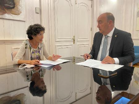 El presidente de la Diputación, Miguel Ángel de Vicente y la presidenta de la Asociación Española Contra el Cáncer en Segovia, Ana Sanjosé han rubricado un convenio mediante el cual, la institución provincial colaborará con el proyecto ‘Espacios sin humo’ impulsado por la organización.