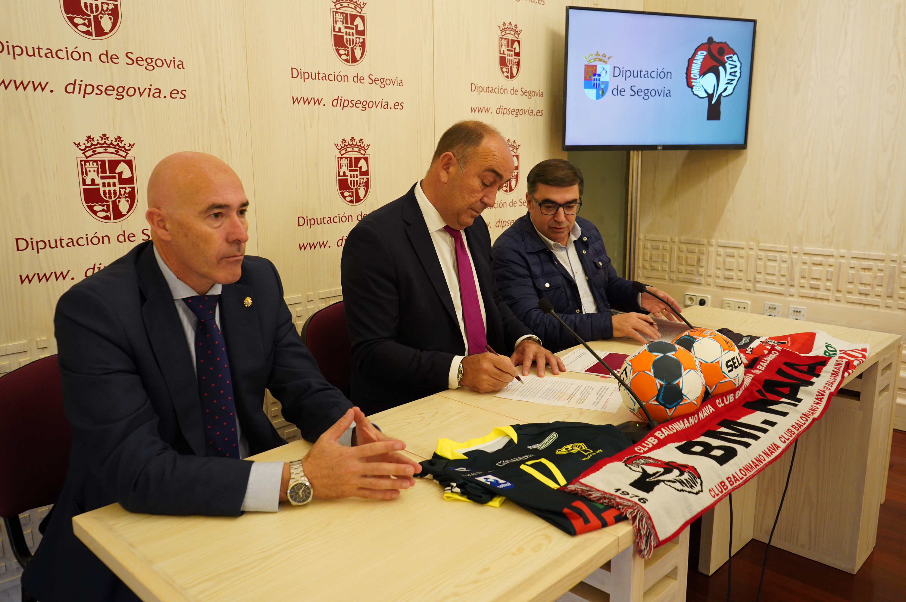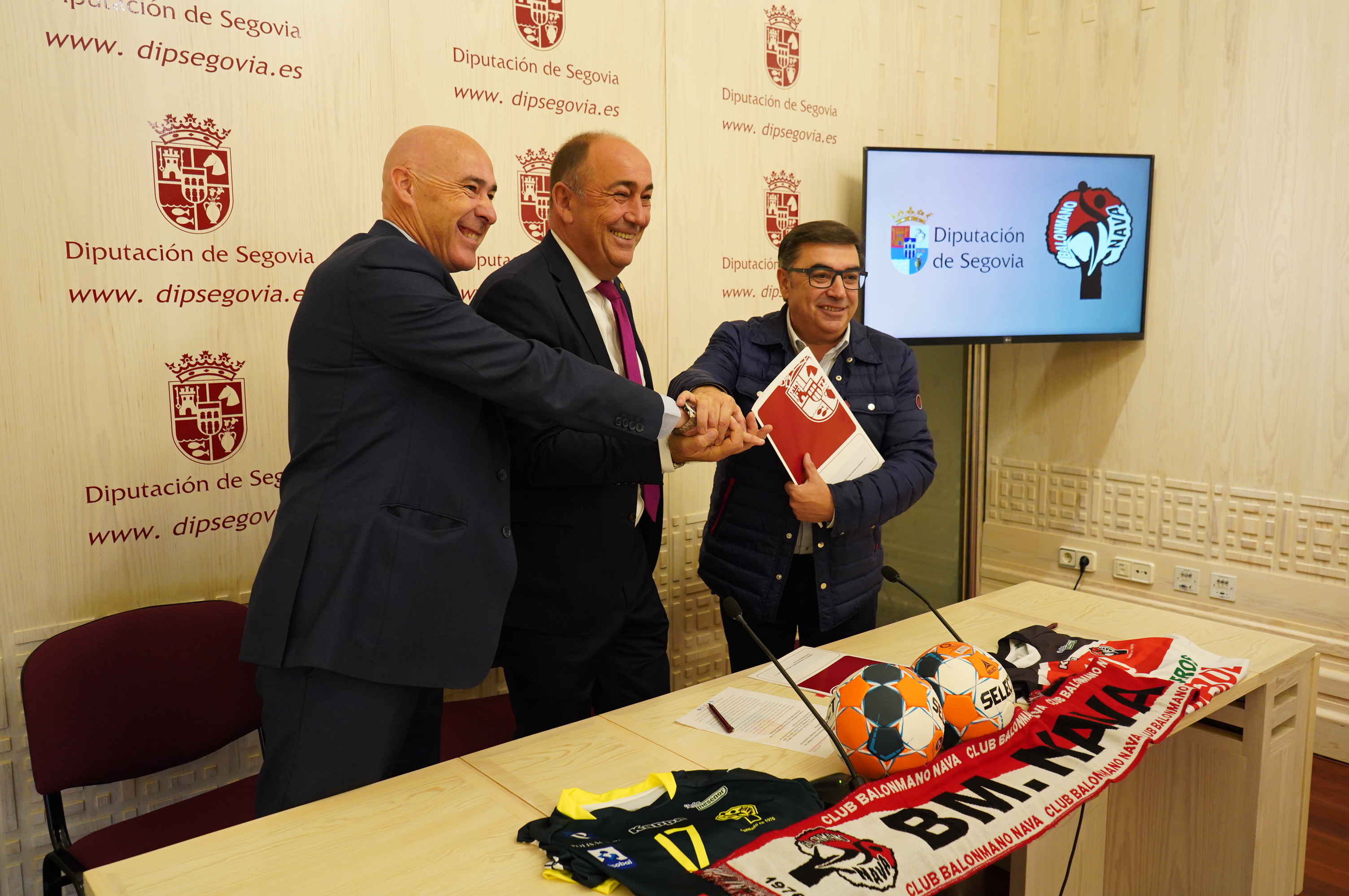 Por ello; porque el club se ha convertido en un exponente promocional de la provincia, porque ha llevado el nombre de Nava de la Asunción a la cumbre del balonmano y también porque ha conseguido enganchar a muchos jóvenes segovianos a la práctica de un deporte, a priori, no mayoritario, el presidente de la Diputación, Miguel Ángel de Vicente, y su homólogo en el club navero, Julián Mateos, han firmado un acuerdo esta mañana por el cual la institución provincial otorgará a la entidad deportiva una subvención directa de 60.000 euros.