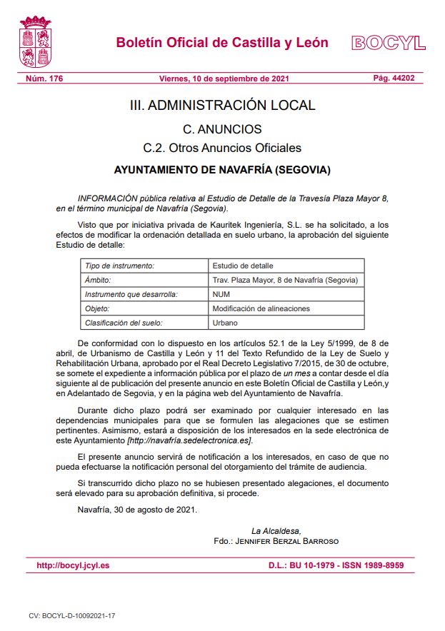 Atrás Información pública relativa al Estudio de Detalle de la Travesía Plaza Mayor 8