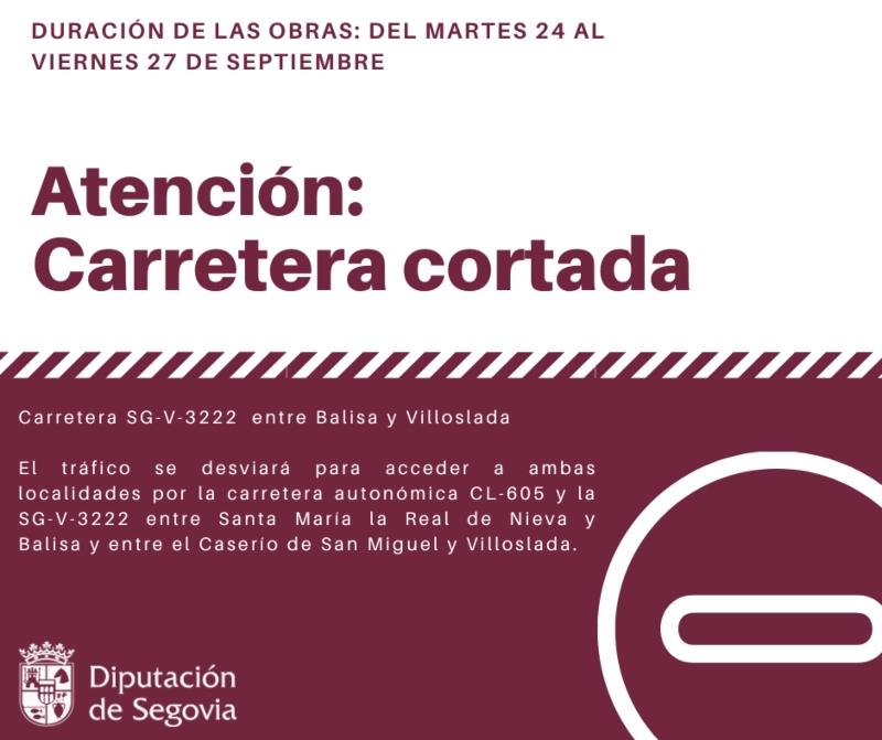 Para acceder a ambas localidades, el tráfico se va a desviar por la carretera autonómica CL-605 y la SG-V-3222, entre Santa María la Real de Nieva y Balisa y entre el Caserío de San Miguel y Villoslada. En cualquier caso, tanto el corte como esos desvíos estarán señalizados con los carteles correspondientes.