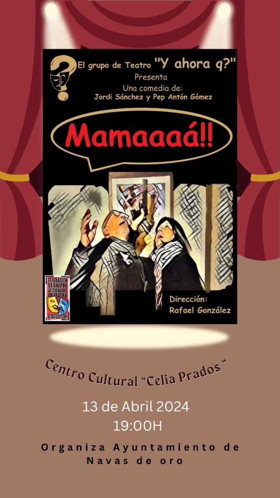 Desde la Delegación de Cultura se presenta una obra de teatro del grupo "Y ahora qué". Titulo: "Mamaaa" Género: Comedia Lugar: Centro Cultural Celia Prados