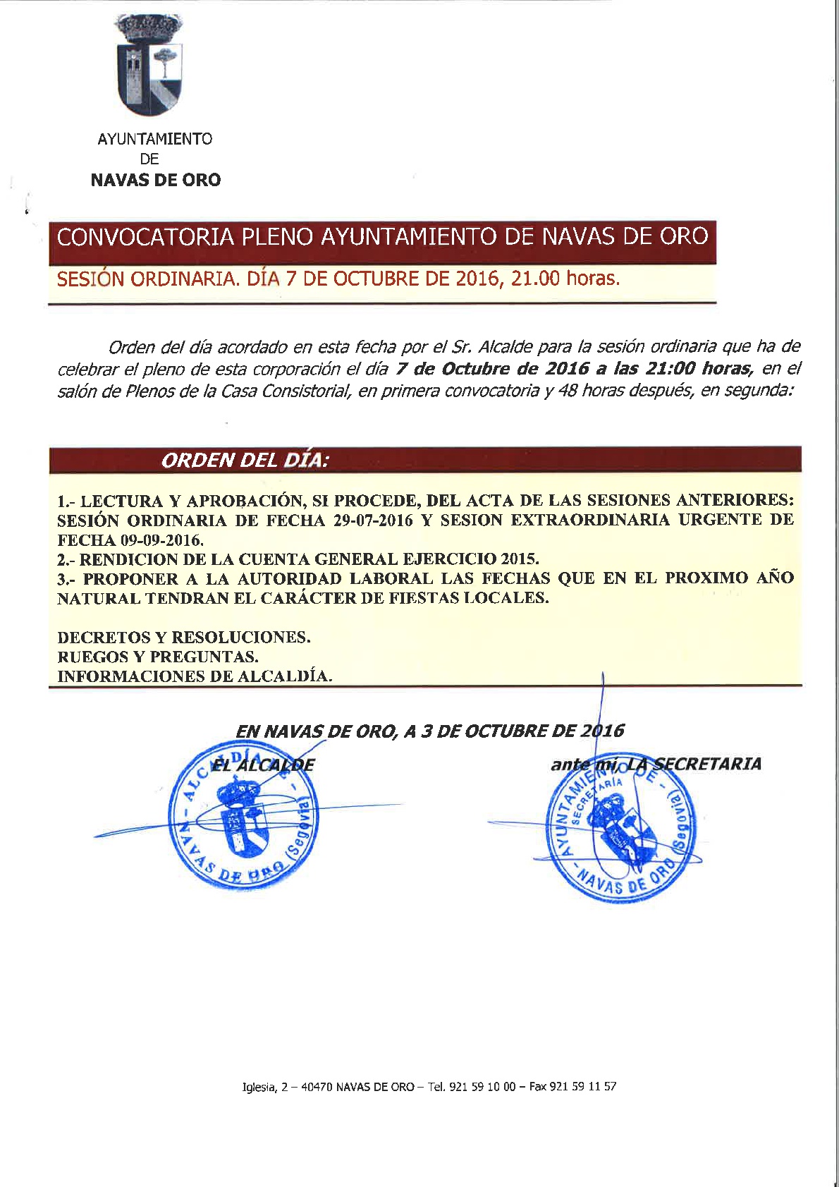 CONVOCATORIA SESIÓN ORDINARIA 7 DE OCTUBRE DE 2016 PLENO ORDINARIO 7 DE OCTUBRE DE 2016 SALÓN DE PLENOS AYUNTAMIENTO 21:00 HORAS Documentos Convocatoria 7 Octubre.pdf (pdf 80,3 kB)