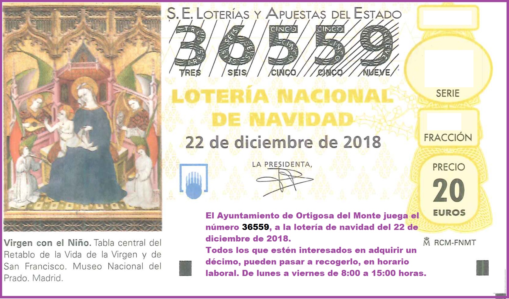 El Ayuntamiento de Ortigosa del Monte juega el número 22453. Los décimos pueden adquirirse en la Secretaría del Ayuntamiento en horas de oficina. ¡Mucha suerte a todos!