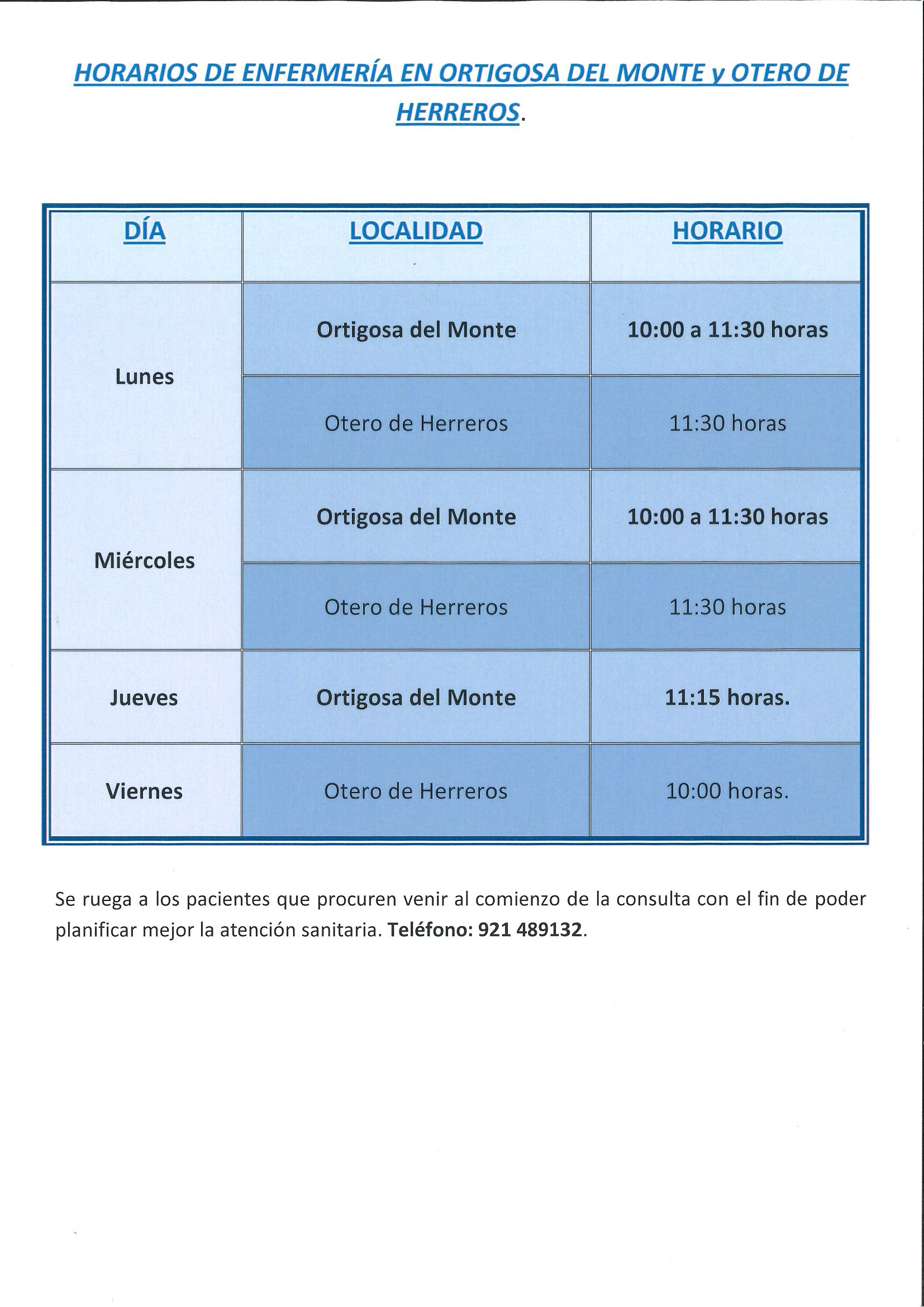 Se adjuntan los horarios de la Zona Básica de Salud Rural para toda la provincia de Segovia, sobre Medicina, Enfermería, Pediatría y otras prestaciones. En Ortigosa del Monte los horarios de...