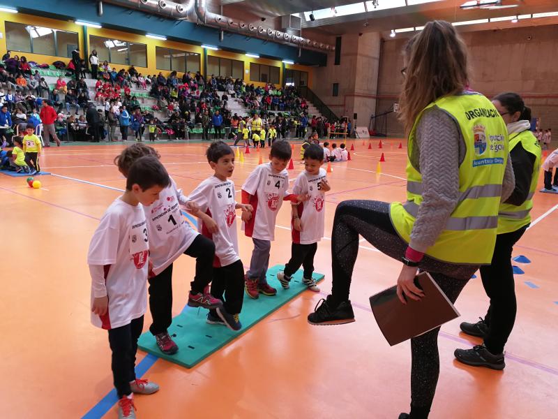 Así, todos los equipos fueron realizando cada una de las pruebas, adaptadas a sus categorías, de las que salió la puntación final: tiros a portería de fútbol y balonmano, a canasta, salto pies juntos, lanzamiento de jabalina espuma, relevo 5 x 10 con vallitas y relevo divertido.