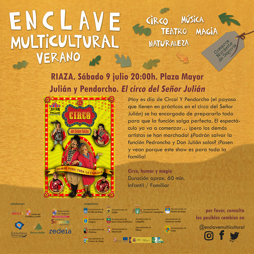 Actuación en la Plaza Mayor de Riaza este sábado 9 de julio de 2022 a las 20:00 horas a cargo de Julián y Pendorcho.