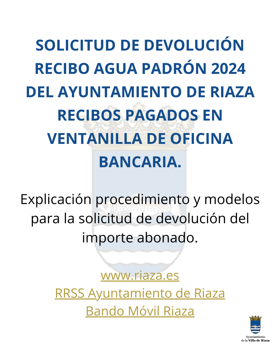 Aquellos contribuyentes que, no tengan domiciliado el recibo y hayan procedido al pago les facilitamos los enlaces a los documentos y los procedimientos para solicitar el reintegro del importe: