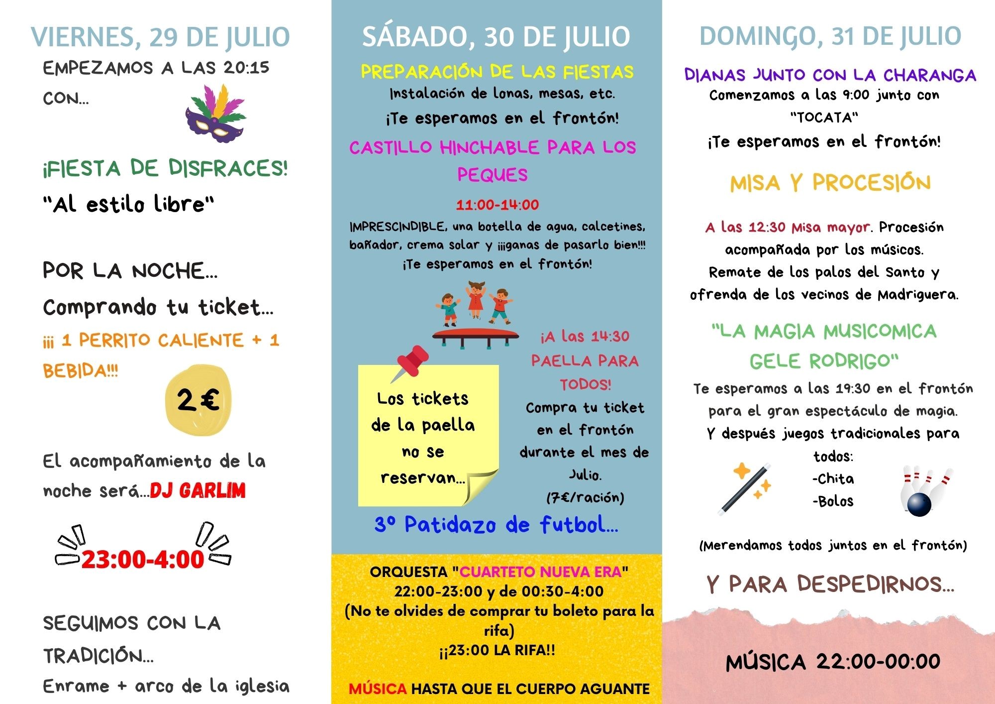 Foleto con las actividades previstas
