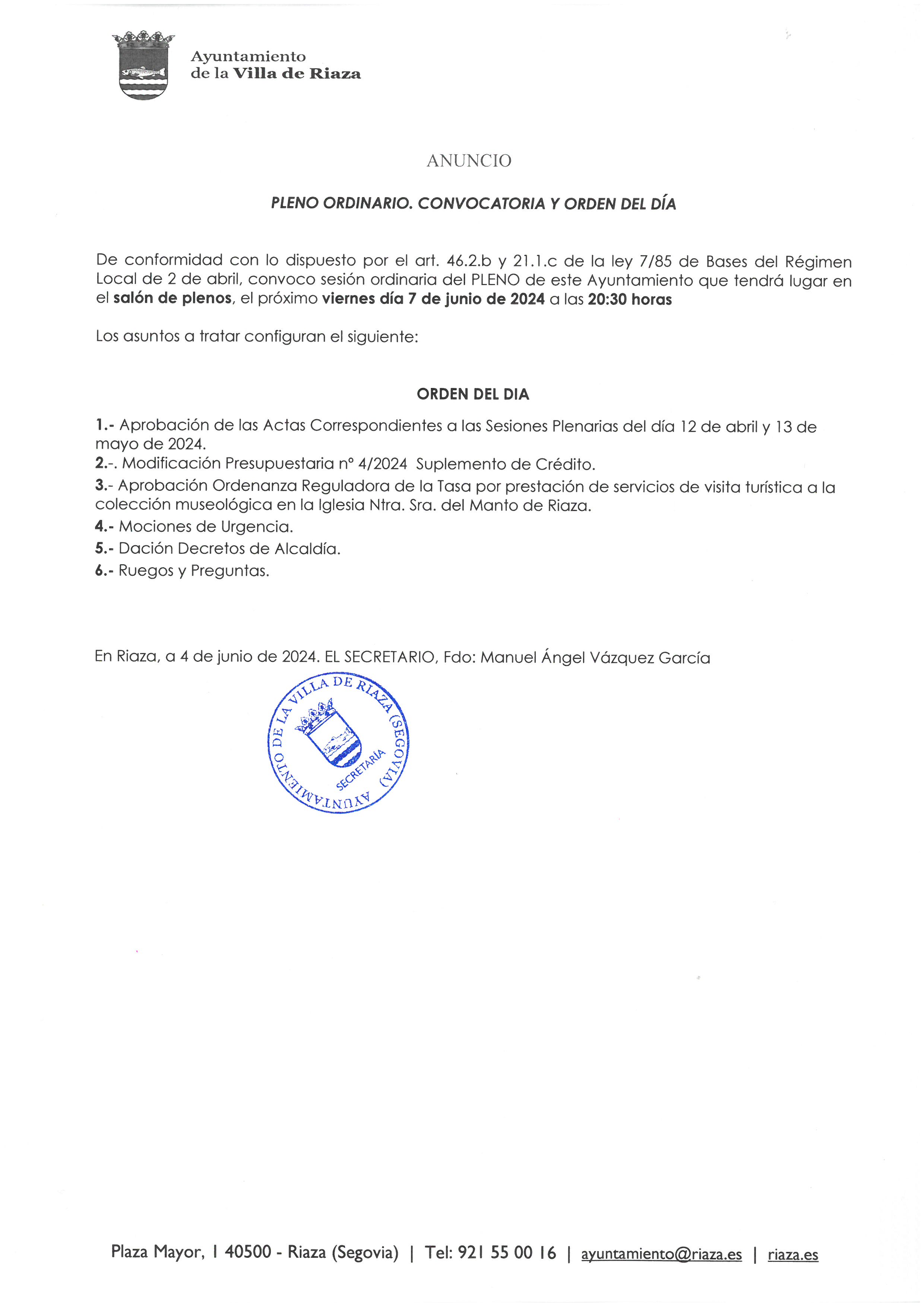 Versión 1.0Por Ayuntamiento Riaza, en 5/6/24 13:58Registro sin cambios