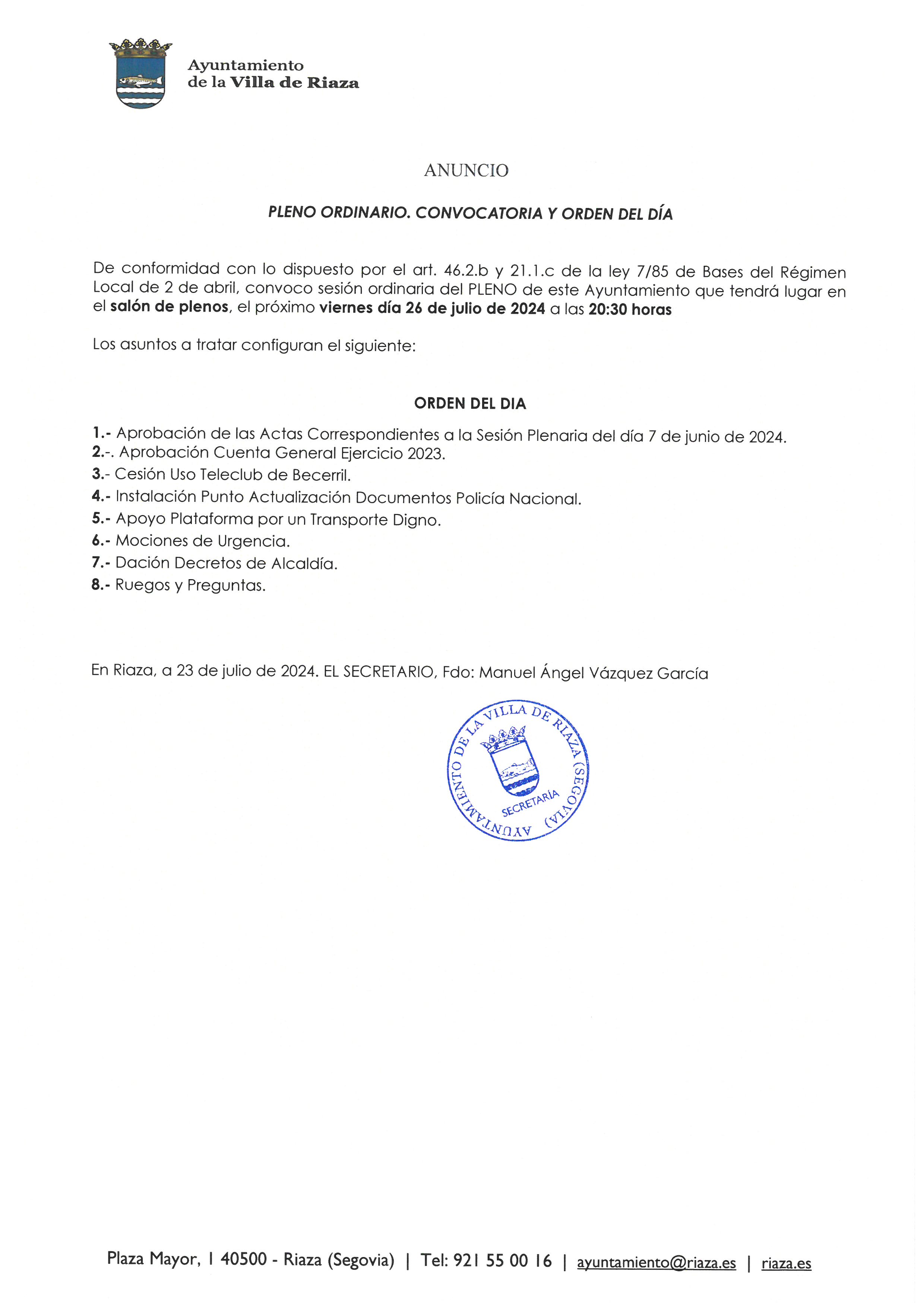 Versión 1.0Por Ayuntamiento Riaza, en 26/7/24 14:13Registro sin cambios