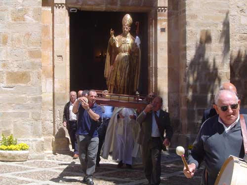 Riaza festeja este día en honor a un santo al que le tiene especial devoción. Cuentan que, tiempo atrás, intercedió por los habitantes de la Villa ante una epidemia de langosta. La solicitud para convertirlo en patrón de Riaza no prosperó, puesto que el pueblo ya tenía como patrona a la Virgen del Manto. Aún así, el Ayuntamiento decidió conmemorar tal hecho, convirtiendo este día en fiesta local y celebrándolo con misa y procesión con la imagen del santo (que, en su momento, fue encargada y sufragada por el Consistorio riazano). Desde hace algunos años, la Asociación Cultural "Cruz de Mayo" viene cocinando en la Plaza Mayor desde primeras horas de la mañana una caldereta de bacalao. Antes de este plato típico se sirven trozos de morcilla y chorizo (acompañado todo ello de un buen vino o bebidas refrescantes). Con todo ello se obsequia a todos los presentes.