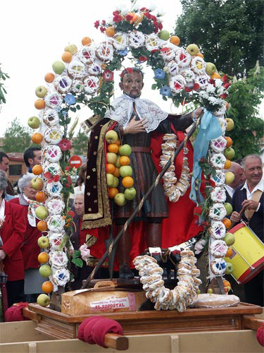 San Isidro Labrador también tiene su día en Riaza. La imagen del Santo, que habitualmente permanece en la ermita de San Roque, sale desde allí por la mañana en procesión por distintas calles de la localidad, llegando a la iglesia parroquial. Allí permanecerá hasta que, por la tarde, emprenda la procesión de retorno hasta la citada ermita. A las puertas de ésta se subastan todas aquellas frutas, rosquillas y tortas que han ido adornando su imagen y su yunta de bueyes.