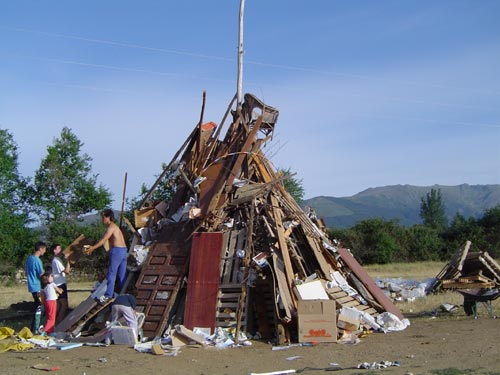 Durante las semanas anteriores, los distintos barrios han ido levantado montones cónicos de leña, enseres o muebles viejos, etc., que al ser prendidos iluminarán la noche (de ahí que en Riaza se las conozca como "luminarias"). Es tradicional que los mismos vecinos preparen chocolate con bizcochos y limonadas que repartirán entre los que se congreguen alrededor de las hogueras.