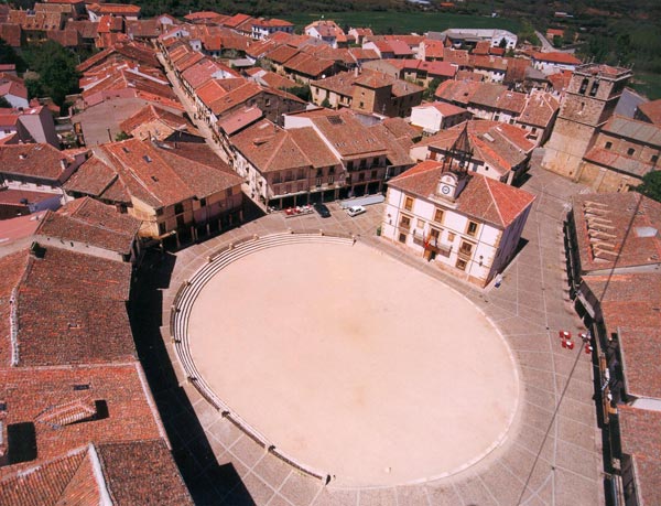 Las casas de la plaza, típicas casas riazanas, algunas de ellas con fachadas blasonadas, construidas la mayoría en el siglo XVIII, tienen la particularidad de poseer soportales apoyados en columnas de piedra o de madera, que servían de abrigo para las gentes en días inclementes, siendo el lugar en el que se comerciaba los lunes de mercado.
