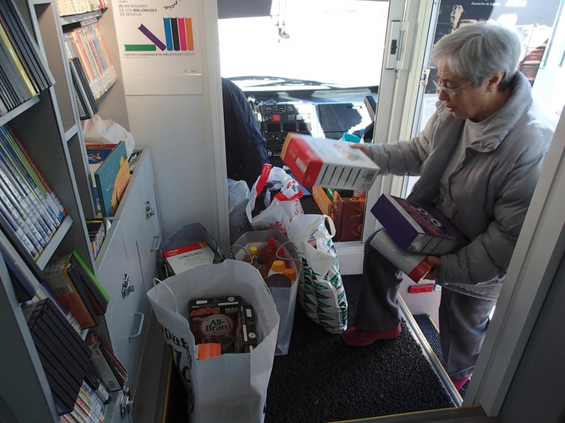 Los niños y las personas mayores son quienes mejor han respondido a la llamada de los bibliobuses, que seguirán recogiendo productos alimenticios no perecederos y material de aseo personal hasta el próximo 31 de enero. Mañana se acercarán hasta Santa María la Real de Nieva, Martín Muñoz de las Posadas, Juarros de Voltoya, Torrecaballeros, Valsaín y Abades; el jueves les tocará el turno a Villeguillo, Ciruelos de Coca, Villagonzalo de Coca, Santiuste de San Juan Bautista, Fuente de Santa Cruz, Donhierro, Montejo de Arévalo, Tolocirio, San Cristóbal de la Vega, Martín Muñoz de la Dehesa, Bernardos, Migueláñez y Armuña; y cerrarán la semana el viernes en Frumales, Moraleja de Cuéllar, Olombrada, Palazuelos de Eresma, Sanchonuño, Dehesa Mayor, Adrados