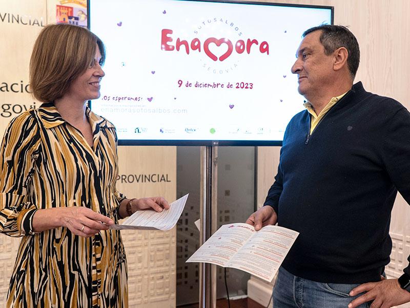 Diciembre volverá a tener una cita ineludible a los pies de la sierra de Guadarrama, con la celebración el próximo 9 de diciembre de la sexta edición de ‘Enamora Sotosalbos’, iniciativa que cuenta con la colaboración económica de 7.000 euros por parte de la Diputación, y que ha sido presentada esta mañana en el Palacio Provincial por la diputada de Promoción Provincial y Desarrollo Rural Sostenible, Magdalena Rodríguez, y el también diputado y alcalde de la localidad, Feliciano Isabel Jimeno.