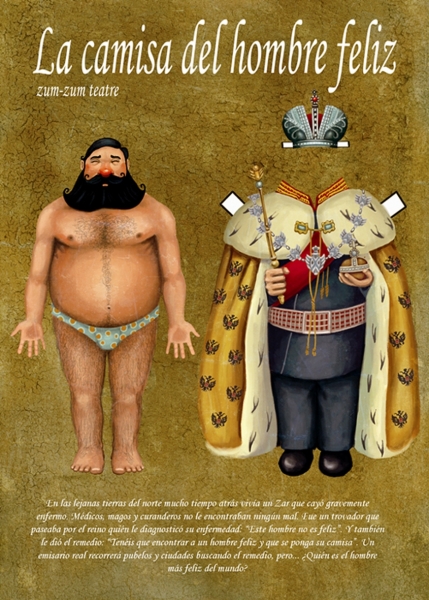 Un espectáculo basado en el famoso cuento del Tolstoi desarrolla una dramaturgia visual y poética que recrea todos los pasajes del famoso cuento, sugiere imágenes que el público tendrá que completar a partir de su propia imaginación y para hacerlo se combinan objetos cotidianos, con el uso de proyecciones de imágenes editadas y tratadas y reproducidas con la tecnología más moderna, ropa tendida y maletas , son los principales objetos que se utilizan para crear los diferentes espacios y servir de soporte para la proyección y los efectos visuales que sorprenden en todo momento a los espectadores. En cuanto a su sinopsis como decimos esta basado en el cuento de Tostoi en el que un Zar cayó gravemente enfermo, con el diagnóstico : "Este hombre no es feliz", el remedio, "Tenéis que encontrar a una hombre feliz y que se ponga su camisa.