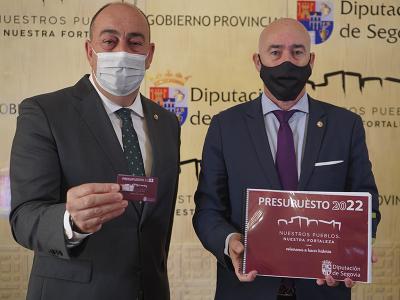 El presidente de la Diputación, Miguel Ángel de Vicente, acompañado del diputado de Hacienda, Óscar Moral, ha presentado esta mañana el Presupuesto de la institución provincial para el año 2022 que trasladará al Pleno el próximo martes 21 de diciembre. De Vicente ha dado a conocer hoy el presupuesto más alto de la historia de la Diputación de Segovia, que contempla 73.933.000 millones de euros, un 10,34% y 6.933.000 euros más que en 2021. "Este es nuestro tercer Presupuesto como equipo de Gobierno y venimos de unos presupuestos prudentes en 2020, donde la regla de gasto junto con la estabilidad presupuestaria eran el denominador común. El año pasado, en 2021, con la suspensión de las reglas fiscales a los territorios de la Unión Europea, presentamos y ejecutamos unas cuentas ambiciosas, pero responsables y honestas con las necesidades de la nuestra provincia. Hoy, planteamos para 2022, los presupuestos más altos de la historia de la institución provincial, llegando prácticamente a los 74 millones de euros", ha comenzado a explicar Miguel Ángel de Vicente. Desde que en 2020 se aprobara un Presupuesto de 59,5 millones euros, pasando por los 67 millones del pasado ejercicio y hasta llegar a los 74 millones de este año, las cuentas de la institución provincial han experimentado un aumento del 24,31%, lo que significa que "de cada cuatro euros actuales, un euro es inversión nueva".