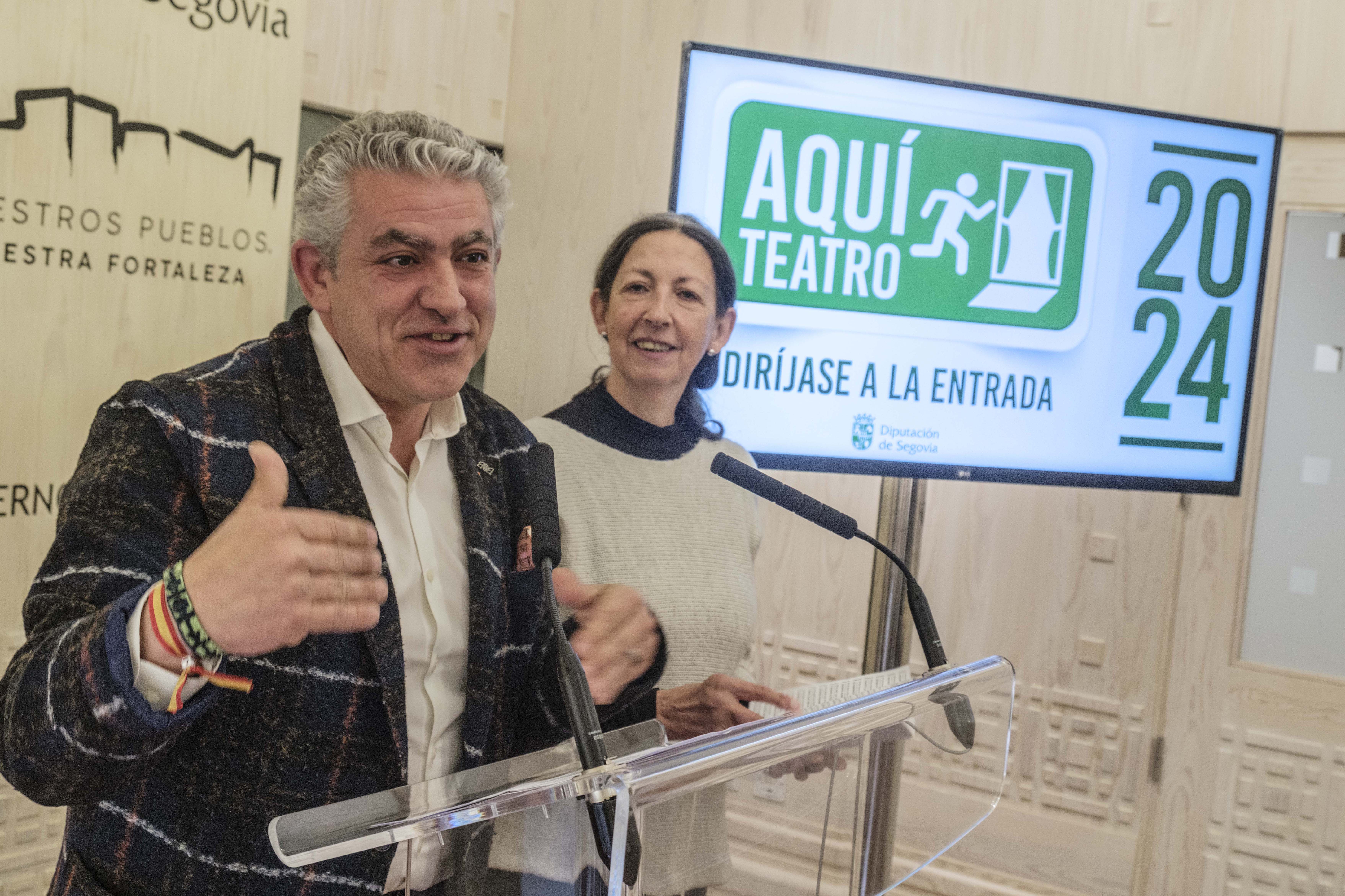 Hontalbilla, Labajos, Torrecilla del Pinar, Aldehuela de Codonal y Cuevas de Provanco, serán las primeras localidades en estrenar la nueva edición del programa ‘Aquí Teatro’ de la Diputación, la extensión al territorio de la Muestra Provincial, que ha sido presentado esta mañana por el diputado de Cultura, Juventud y Deportes, José María Bravo, y Pilar Pérez, de la compañía Café o Qué, y que este año 2024 se prolongará desde este Jueves Santo, 28 de marzo, hasta el 15 de diciembre con actuaciones por todos los rincones de la provincia.