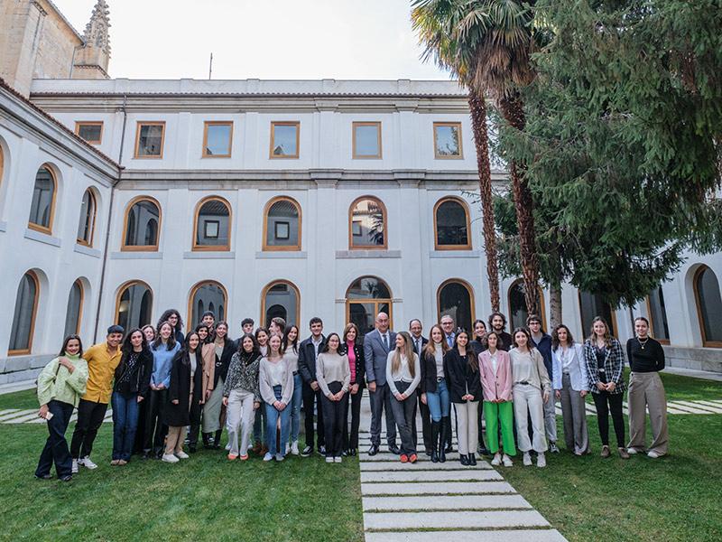 La sala capitular de IE University en el campus de Santa Cruz la Real ha acogido esta tarde un acto especial, en el que la IE Foundation de la institución académica, de la que es vicepresidente ejecutivo Gonzalo Garland, ha querido reconocer y celebrar los logros de los cincuenta y cuatro estudiantes de la provincia que han sido becados este curso, gracias al acuerdo que, desde hace años, mantiene la Universidad con la Diputación y que en el último mandato ha visto ampliada su cuota; de medio centenar de ayudas a cincuenta y cuatro.