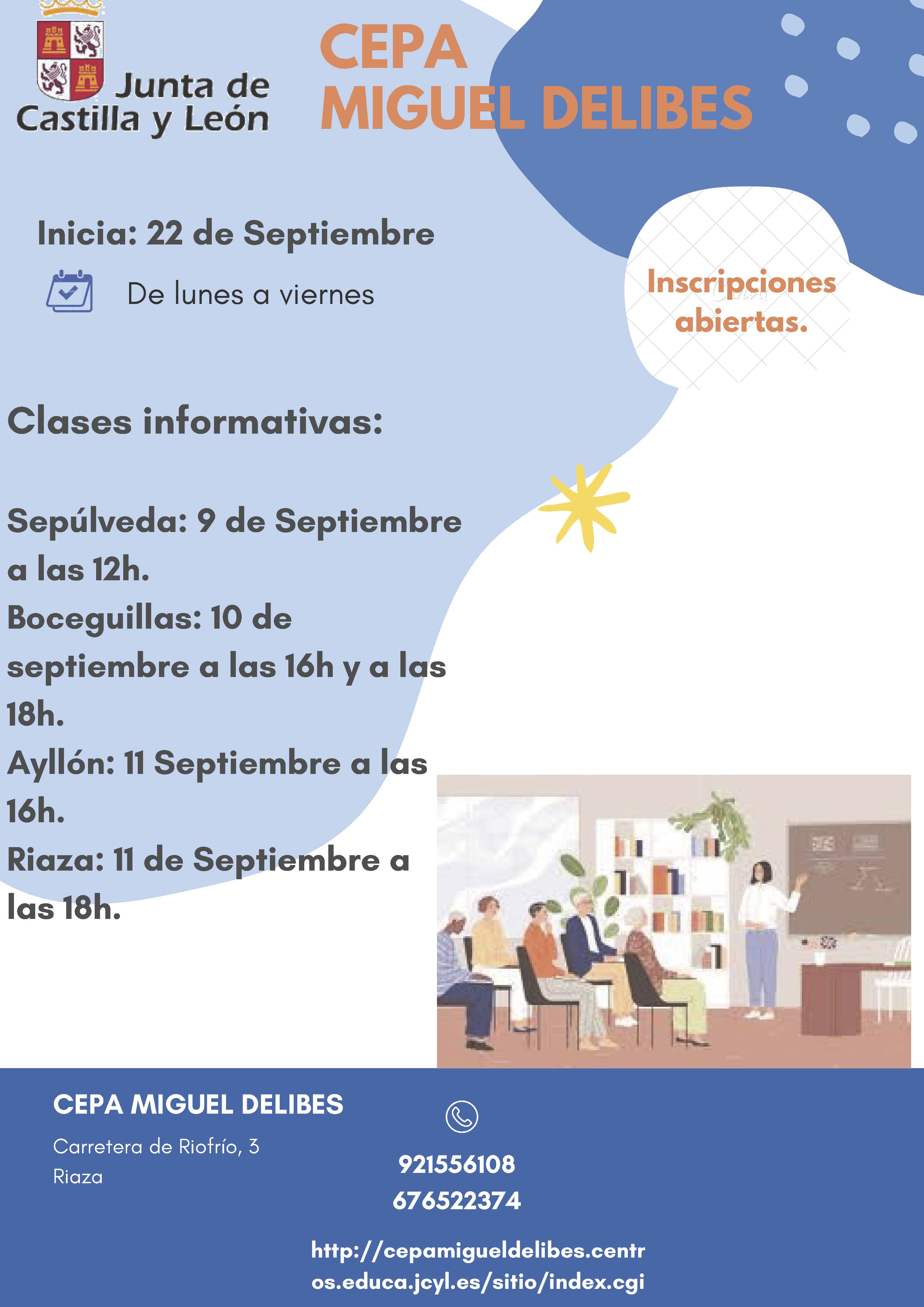 Clase informativa escuela adultos Sepúlveda 9 de septiembre a las 12h. Lugar antiguas escuelas. Inicio 22 de septiembre