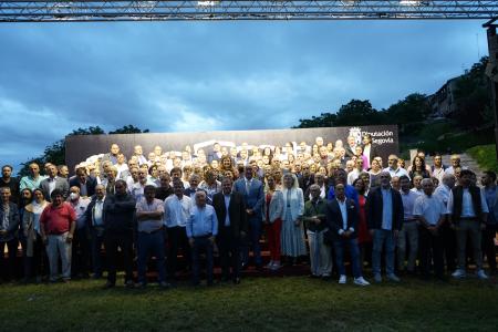 Con una gran foto de familia en la que un importante número de alcaldes de la provincia posaba para celebrar el Premio ‘Juntos’ 2020, otorgado a cada uno de los 209 alcaldes de la provincia, la Diputación de Segovia daba por concluido el acto de entrega de los Premios Diputación, que la institución recuperaba tras dos años sin poder celebrarlo debido a la situación sanitaria. Y eso, a pesar de la lluvia, que obligaba a retrasar unos minutos el evento y que, prácticamente al final del acto, obligaba también a interrumpirlo cuando únicamente quedaban dos galardones por entregar. No obstante, la tormenta no aguaba la fiesta y, gracias también a la predisposición de los invitados, el evento se convertía en una auténtica celebración multitudinaria en la que se unían los premiados de 2019, 2020 y 2021, siendo reconocidos hasta dos centenares y medio de personas, entidades o servicios por su contribución diaria -y de manera especial en los últimos años- a la puesta en relieve del valor de la provincia.